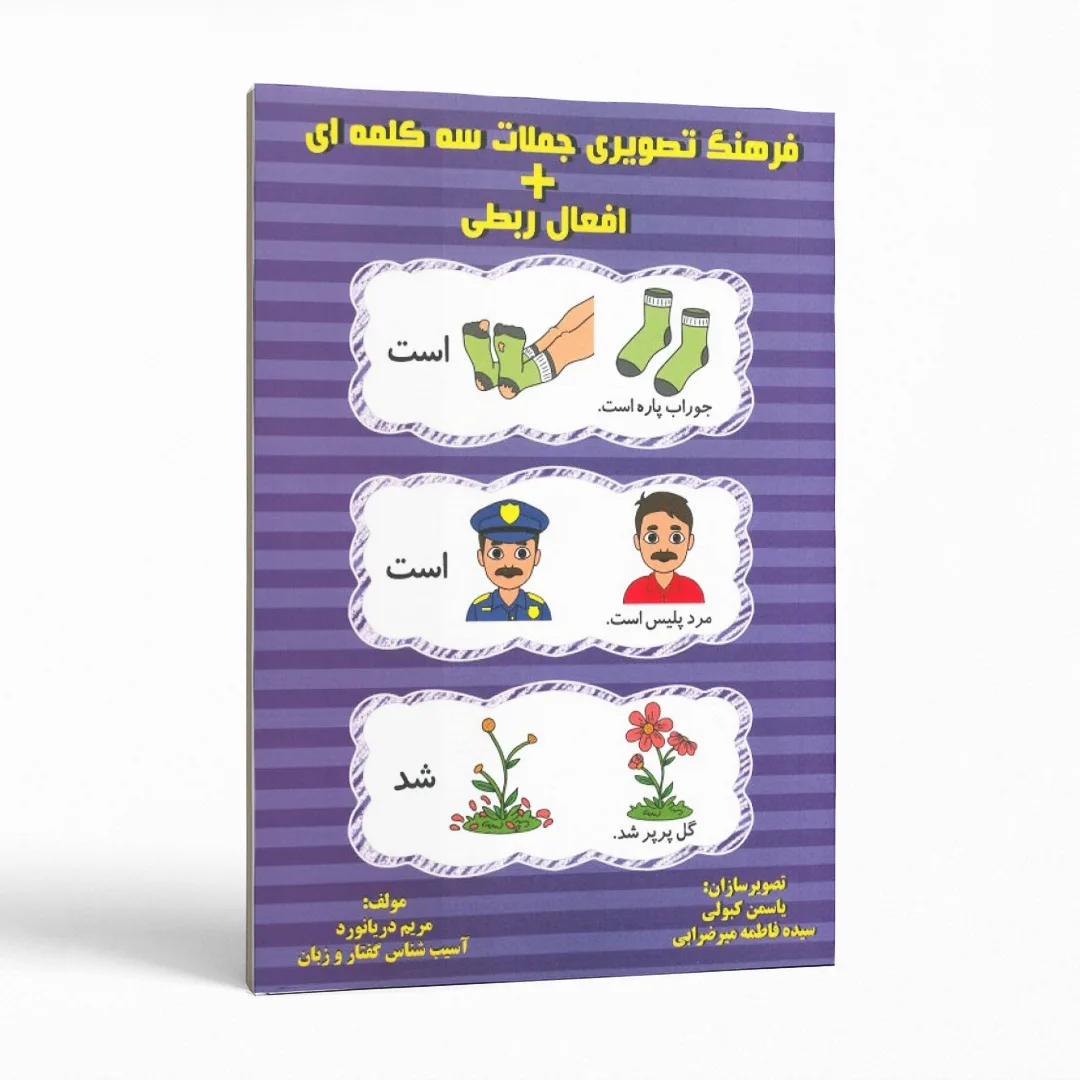کتاب «فرهنگ تصویری جملات سهکلمهای + افعال ربطی» دقیقاً برای پاسخ به همین نیاز طراحی شده است. این اثر صرفاً یک کتاب مصور نیست، بلکه یک ابزار درمانی ساختاریافته است که با هدف آموزش منطق بنیادین جملهسازی سه کلمهای تدوین شده است. تمرکز ویژه این کتاب بر «افعال ربطی» (مانند است، بود، شد) است؛ کلماتی کلیدی که همچون چسب، اجزای جمله (فاعل، صفت/مفعول) را به هم متصل میکنند و آموزش آنها به دلیل ماهیت انتزاعیشان، اغلب برای کودکان، به ویژه آنهایی که نیاز به آموزش عینی دارند، دشوار است.